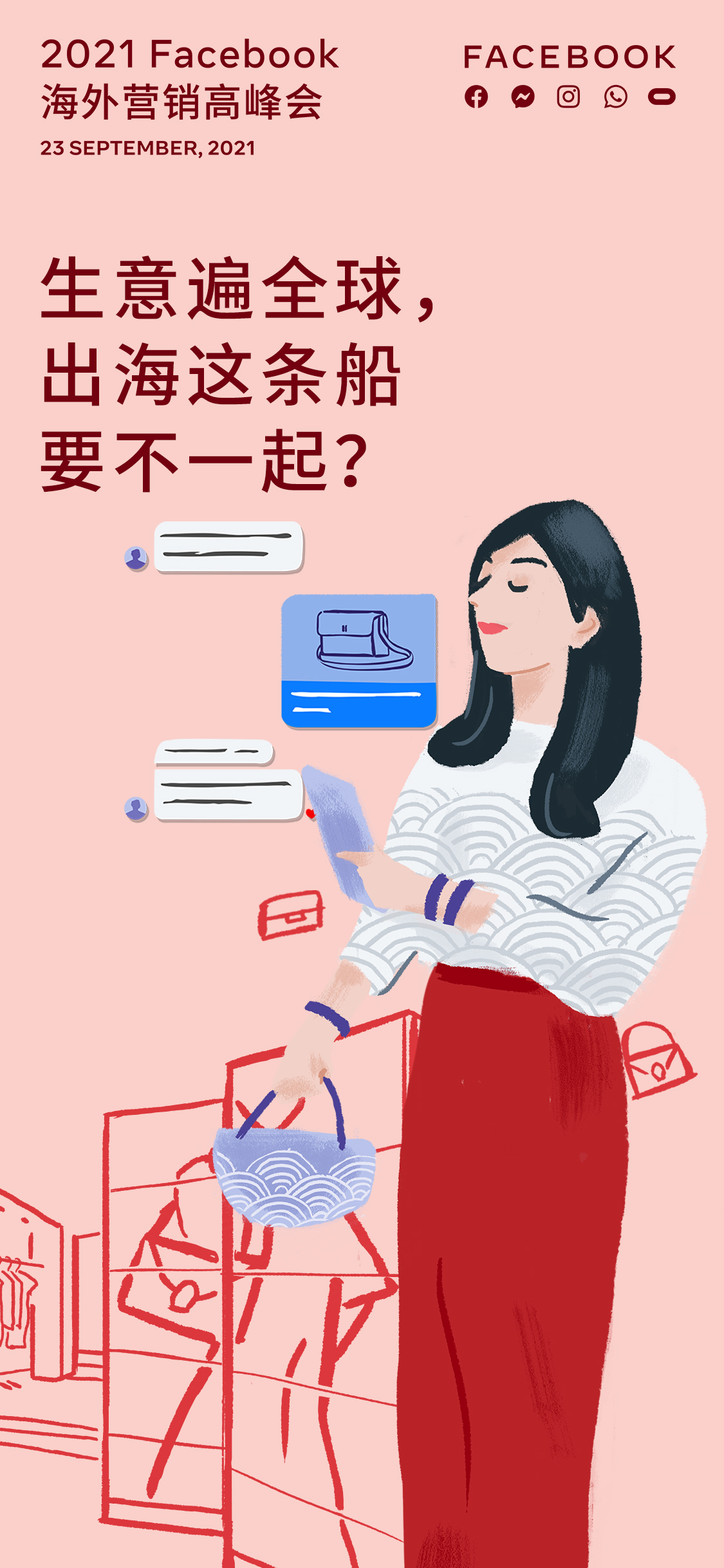 Facebook's Overseas Marketing Summit is mainly aimed at Chinese domestic enterprises that intend to conduct overseas business. I was responsible for the layout and copywriting of this series of posters as well as the animation of the WeChat stickers, which won the title of Outstanding Emoticon Artist of the Year 2022 by the WeChat platform.